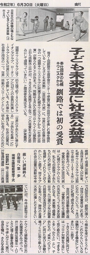 2020年6月30日釧路新聞